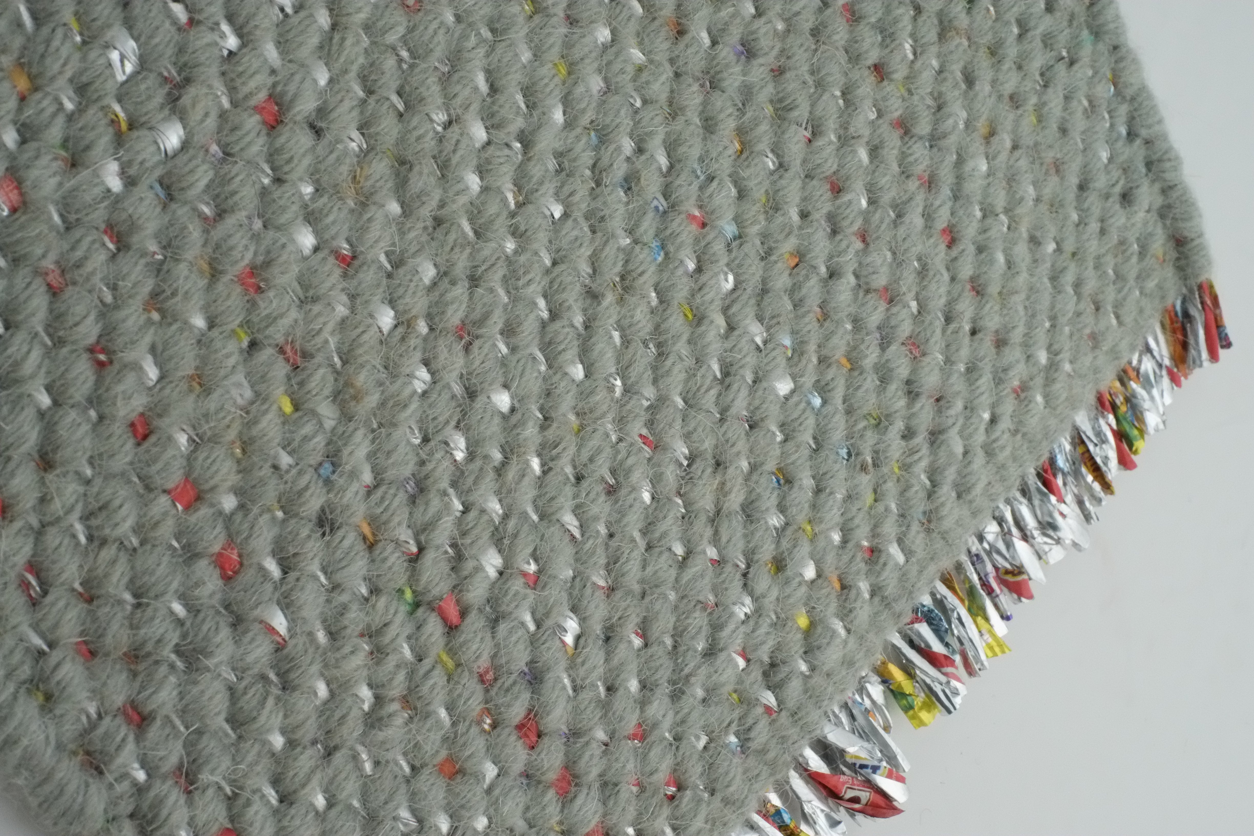 Le Candy Wrapper Rug constitue le cœur de notre collection Nomad. C'est notre première étincelle pour tisser des tapis à partir de restes de matériaux. Le Candy Wrapper Rug est un tapis tissé. La chaîne est composée de papier d'emballage (20 %) et de laine vierge (80 %). Le Candy Wrapper Rug s'adapte à son environnement. Par temps nuageux, il a un aspect simple et calme. La lumière du jour, le soleil ou la lumière artificielle la font briller. On dirait une surface d'eau sur laquelle le soleil danse. Chaque Candy Wrapper Rug est unique et il n'en existe qu'un seul au monde.